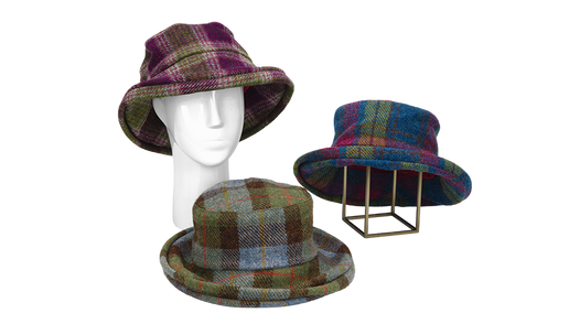 Distinctive Harris Tweed® headwear beyond the classics—think deerstalker, trapper or beret. Handwoven fabric, practical details and confident patterns for people who like styles with character and a story.