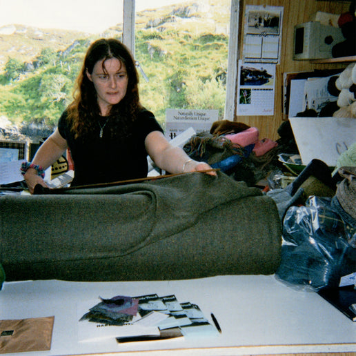 Step into our family’s story, woven deeply into Harris Tweed’s history. The Campbell family’s tradition of weaving spans decades on Harris, where each generation passes down the craft. From spinning wheels by the hearth to bustling shops today, our family’s passion for quality and heritage is the heart of everything we do.
