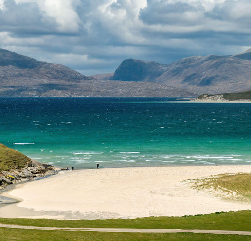 Experience the essence of Harris, where rugged mountains meet sand beaches and Atlantic winds. Our island home infuses every thread of Harris Tweed with inspiration – from the rich hues of heather and moss to the enduring spirit of the crofters. Discover how this wild landscape shapes our craft and story.